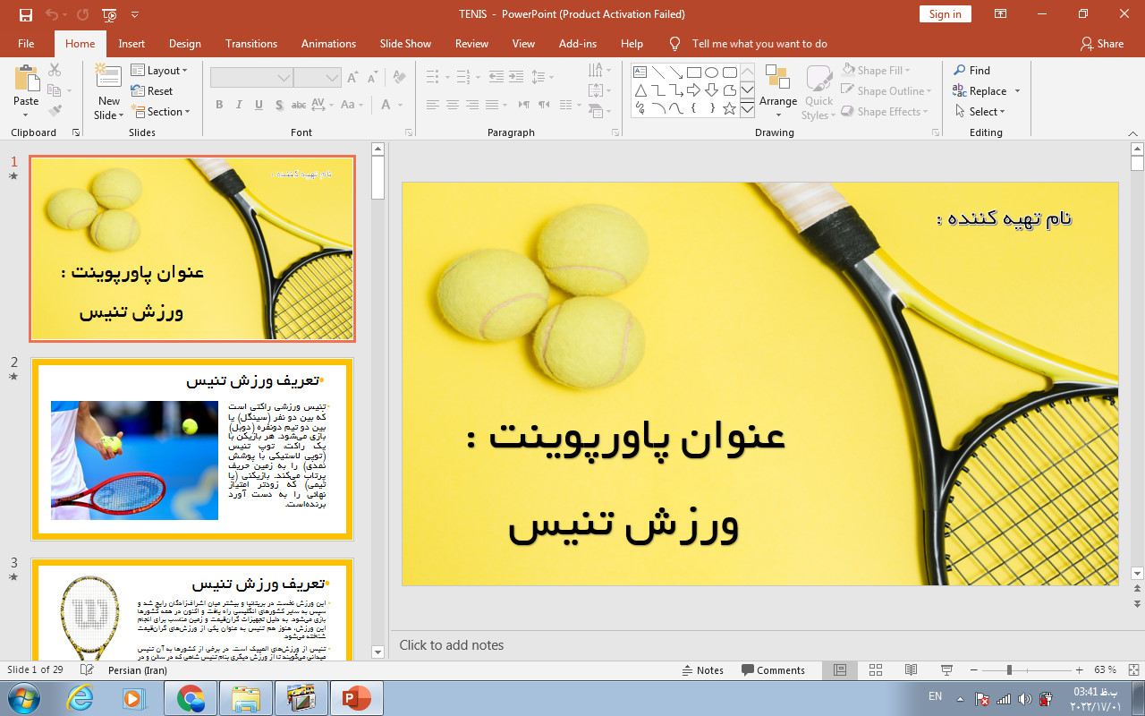 نکته : در صورتی که فایل های خریداری شده با فونت های غیر استاندارد نمایش داده می شود، فونت های سری B را از اینترنت دانلود و نصب نمایید و مجددا آفیس را خاموش و روشن کرده و فایل خود را فراخوانی نمایید.