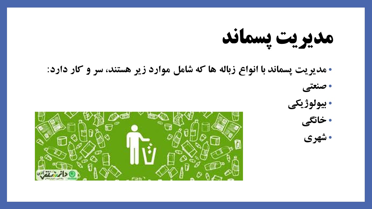 عنوان فایل : پاورپوینت پسماند (مدیریت پسماند)