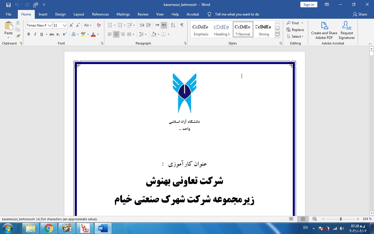 عنوان کارآموزی : گزارش کارآموزی درشرکت شهرک های صنعتی
