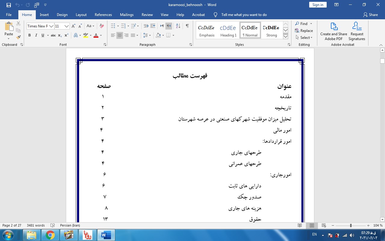 نکته : ممکن است به دلیل تفاوت ورژن های آفیس و دیگر دلایل در برخی از فایل ها و از جمله همین فایل، شماره ذکر شده صفحات در فهرست، دقیقا منطبق نباشد.